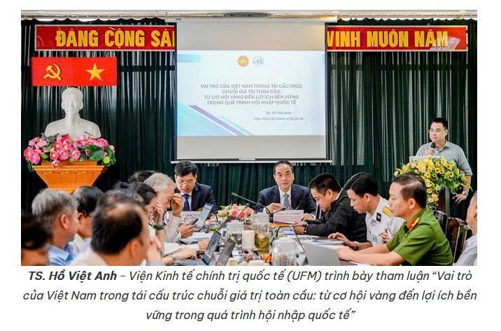 Tuần rồi, ngày 8/12 mình có cơ hội phát biểu tại Hội thảo khoa học quốc gia của Ban Tuyên giáo và Dân vận Trung ương, chủ đề mình trình bày là “Vai trò của Việt Nam trong tái cấu trúc chuỗi giá trị toàn cầu: từ cơ hội vàng đến lợi ích bền vững trong quá trình hội nhập quốc tế”, với 1 số nội dung cơ bản như sau: